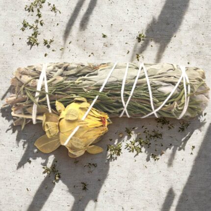 Valge salvei tõrvik on mugav ja tõhus viis läbi viia puhastusrituaale nii kodus, kontoris kui isiklikus praktikas. Looduslik ja keemiliselt töötlemata – käsitsi seotud ja kuivatatud.
